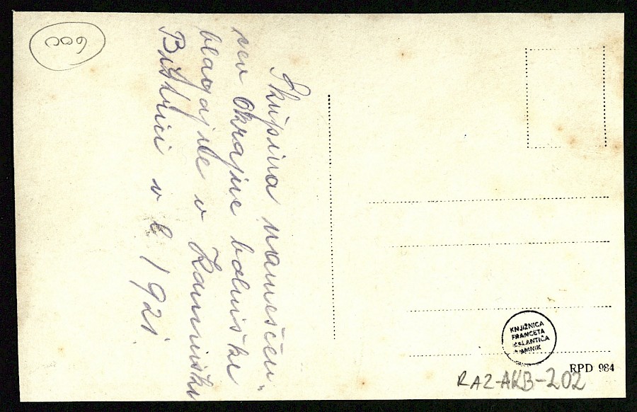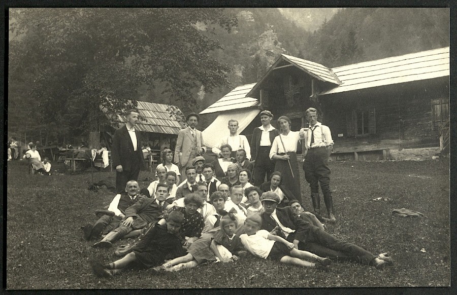 Skupina nameščencev Okrajne bolniške blagajne v Kamniški Bistrici v letu 1921. Skupina je fotografirana pred domom v Kamniški Bistrici. Bolniške blagajne so začeli ustanavljati v avstrijskih deželah po letu 1888, potem ko so izdali Zakon o zavarovanju delavcev. V Ljubljani je bila ustanovljena leta 1889 in je delovala do leta 1922, ko so v Kraljevini SHS poenotili socialno zavarovanje.