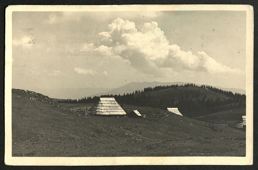 Značilne pastirske koče oz. pastirski stanovi na Veliki planini. Velika planina obsega Veliko, Malo in Gojško planino ter Dovjo in Veliko gričo. Najstarejši najdeni in raziskani tloris pastirske koče sega v 16. stoletje in je po merilu in obliki skoraj identičen "Preskarjevi bajti".