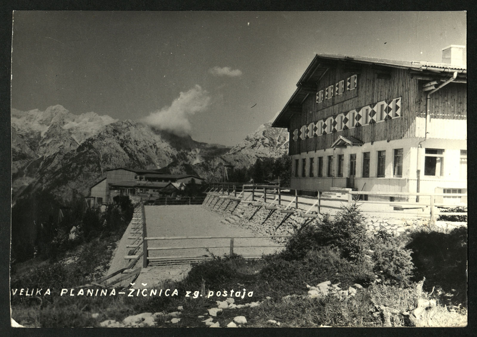Pogled na hotel Šimnovec in zgornjo postajo žičnice na Veliki planini. Hotel Šimnovec, poimenovan po planincu, partizanu Milanu Šimnovcu je bil zgrajen okoli leta 1964.