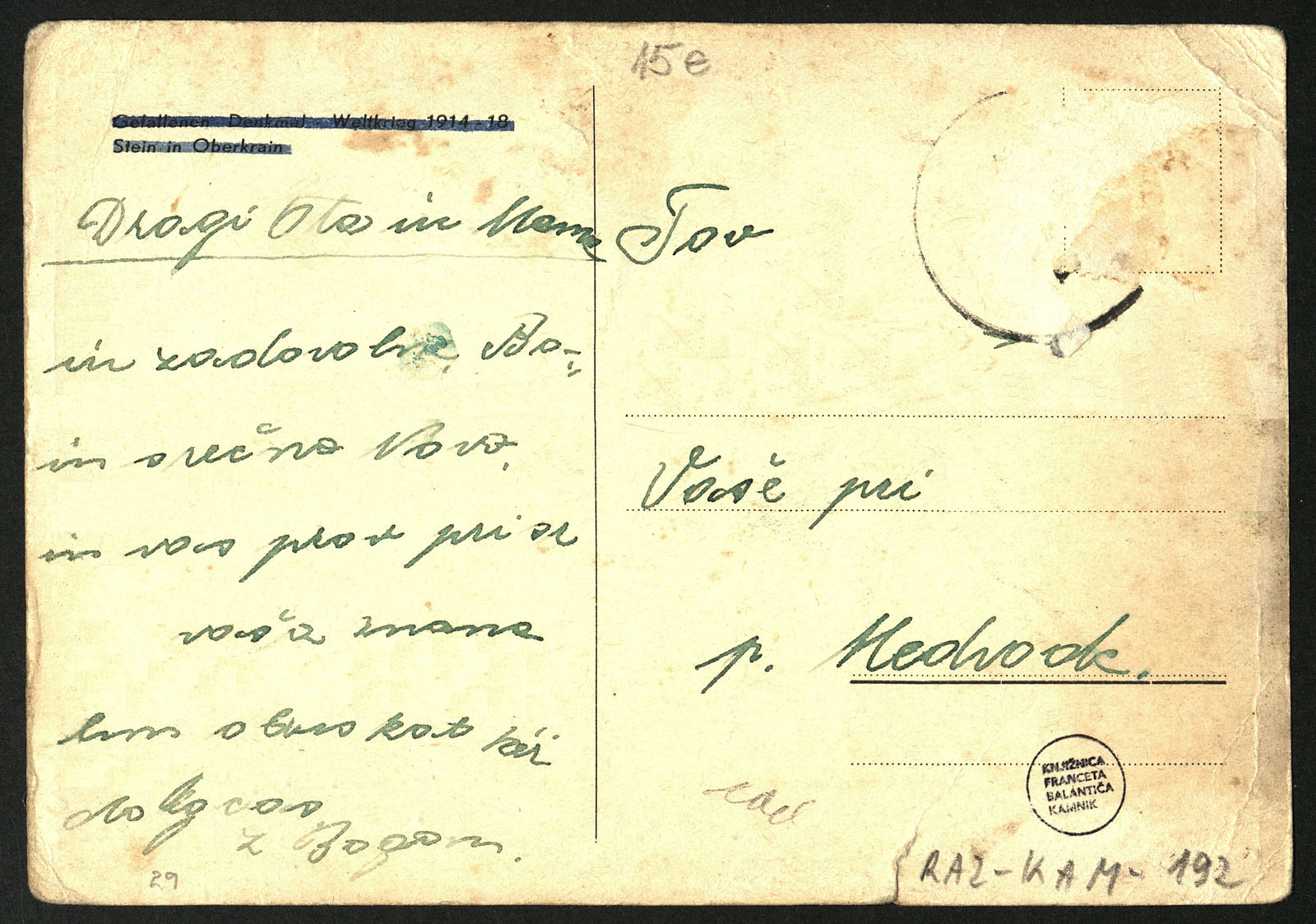 Oznaka razglednice v zbirki: