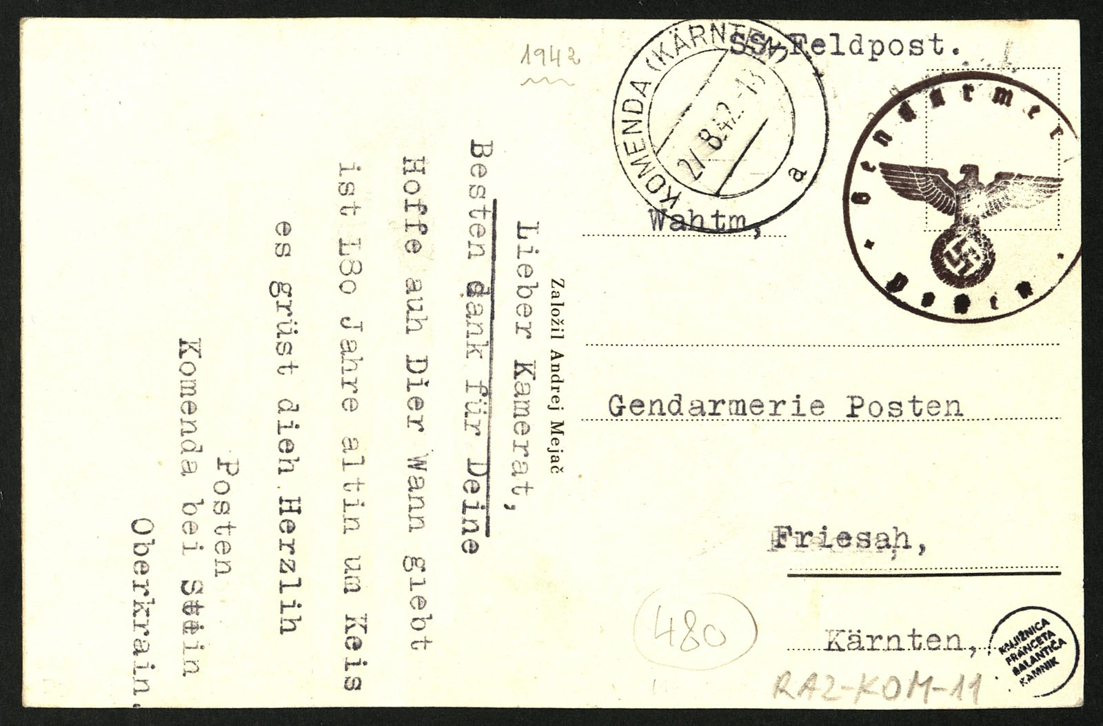 Oznaka razglednice v zbirki: