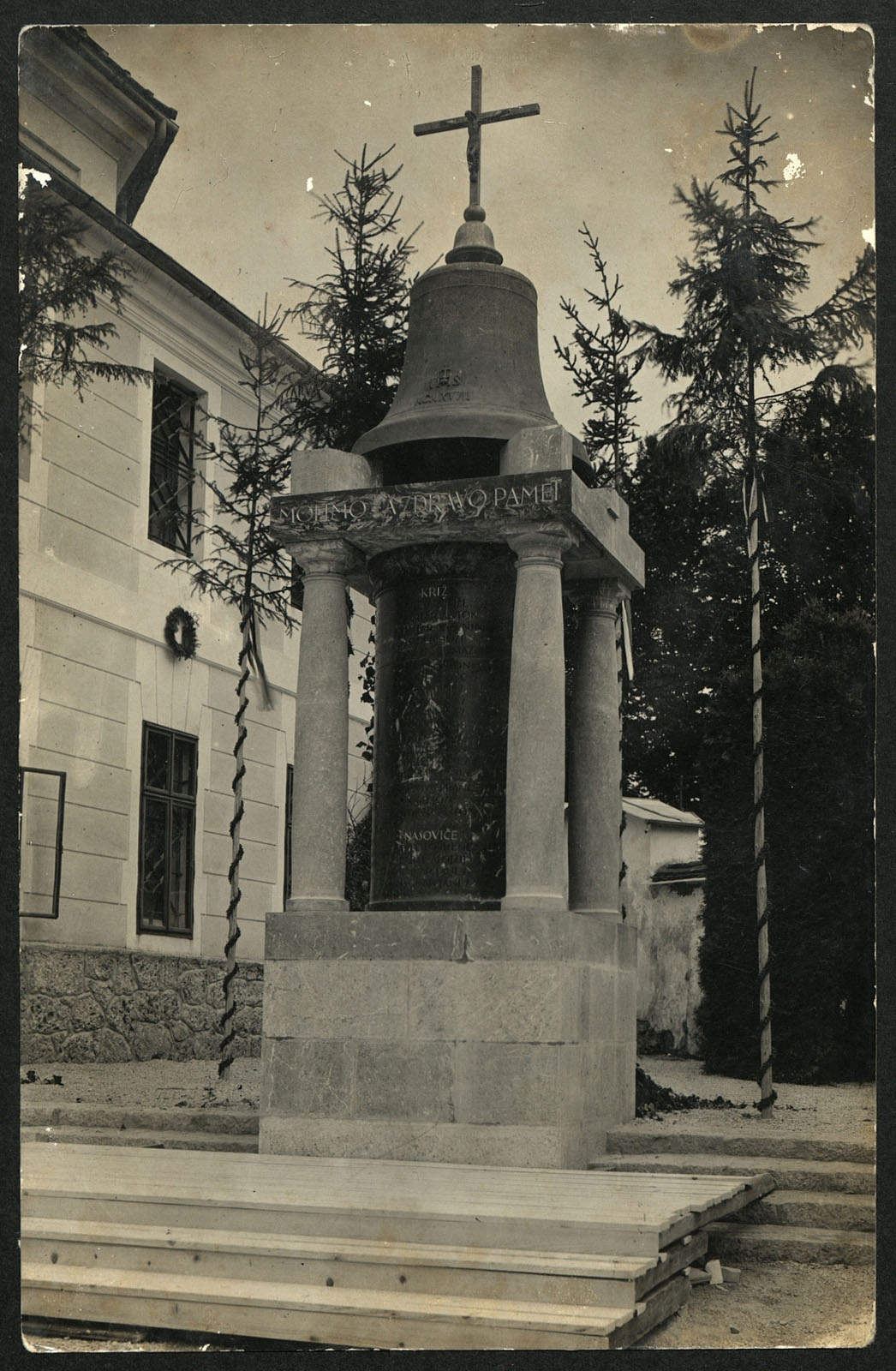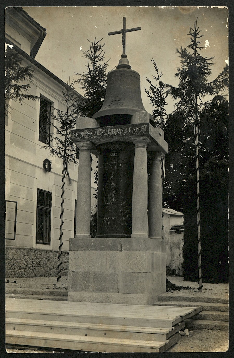 Plečnikov spomenik padlim v 1. svetovni vojni iz leta 1935 na trgu pred župnijsko cerkvijo sv. Petra.
