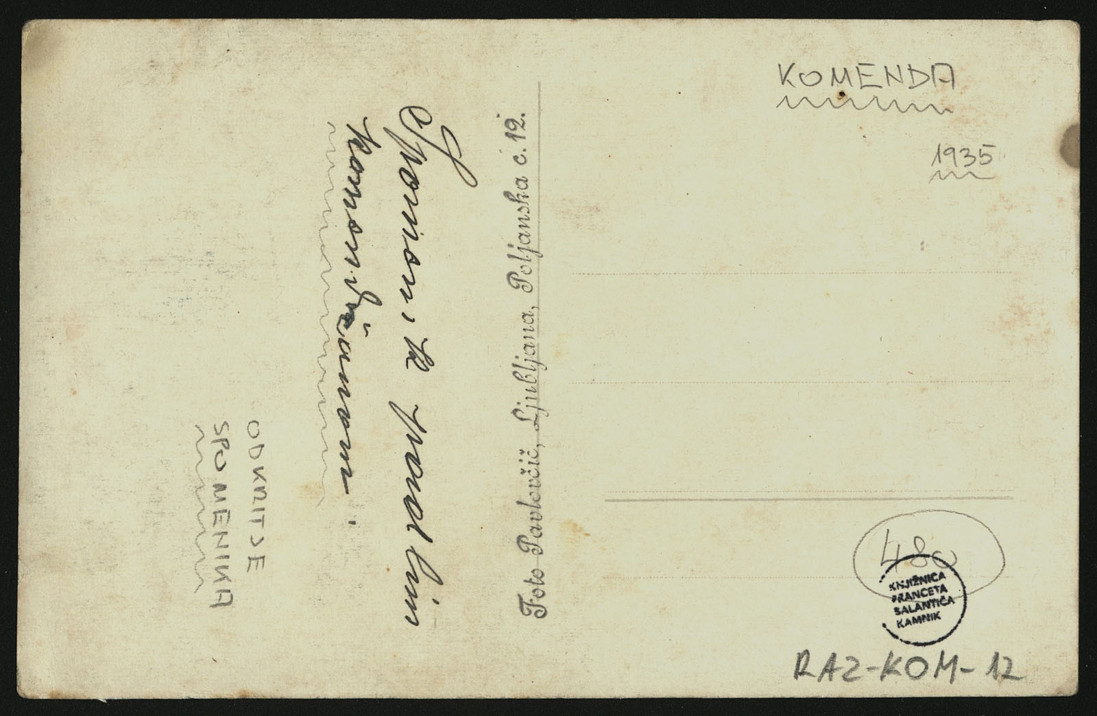 Oznaka razglednice v zbirki: